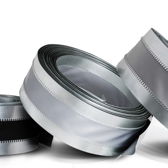 Vibration-dampening duct connector rolls join two metal ducts while reducing vibration transmission along the duct run. They include two metal strips connected with a flexible, airtight fabric section between them. The metal strips provide a solid connection point for the ducts while the fabric section muffles sound and vibration transfer between them. They are commonly installed onto the outlets of air handlers and fans to reduce noise in the occupied space.