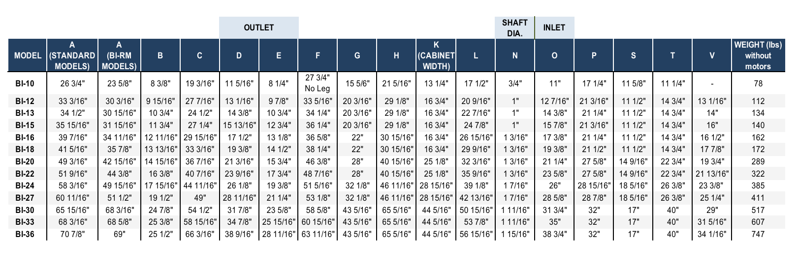 Outlet flanges on models BI-24 to BI-36.